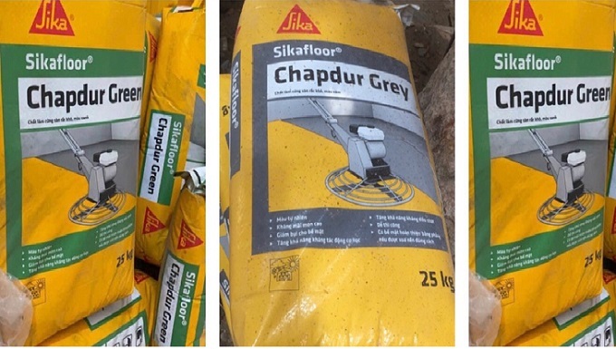 - Chất tăng cứng sàn gốc xi măng Sikafloor Chapdur Green sử dụng ở dạng rắc khô, có màu xanh. Tác dụng tăng độ cứng đặc biệt chống mài mòn caogia cố bề mặt sàn chịu sự mài mòn cơ học nghiêm trọng, các lớp trát cần vật liệu gia cường.